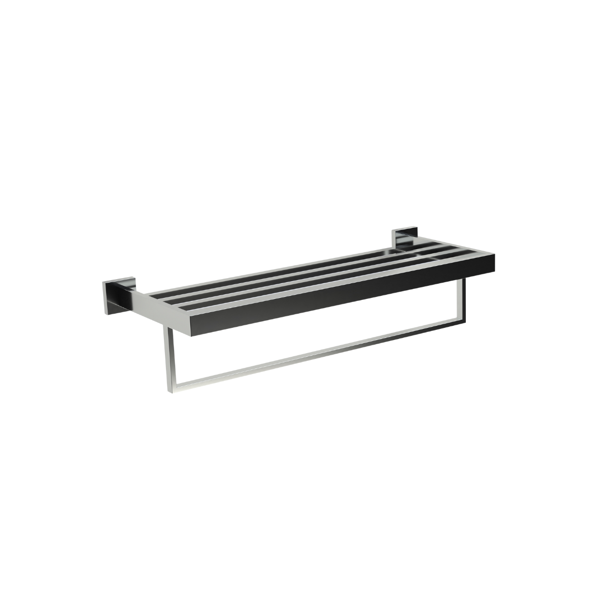 Infinito Double Bathtowel Shelf provides layered towel storage with sleek stainless design and wall-mounted convenience.